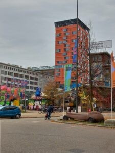 Det gamla slutna Phillips-kvarteret – nu Strijp-S – var ett område som gick att nå genom tre portar. Vår Camilla Mattson berättade om hur hon under sin studietid stått vid en av dessa portar för att hon ville diskutera sitt examensarbete med ledningen. Nu är det ett brusande öppet område – Strijp-S – där nya byggnader måste ha en nedervåning – en plint – som huserar affärer, gallerier, caféer och andra funktioner som människor kan besöka. Det här området är ett levande område inte minst under Dutch Design Week …. då det finns utställningar och aktiviteter genom hela staden med Strijp- S som centrum. I närheten ligger ett av Nederländernas mest intressanta designcenter, Piet Hein Eek.