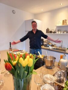 Sofi och Marcel träffade varandra i restaurangvärlden i Schweiz för länge sedan. Marcel var bland annat kock på stjärnrestaurangen ’Le Pont de Brent’ i Montreux. På restaurangens hemsida känner jag igen känslan jag fick hemma hos Sofi och Marcel: utsökta och vackra rätter. Dessutom en överväldigande gästfrihet i deras vackra hem. Intresset för god mat och matlagning har de gett vidare. Även dottern Lynn lagar gärna mat. Hon och hennes pojkvän Orlando tog emot oss med en välkomstdrink.