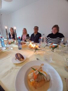 Samtalen flöt lättsamt mellan gästerna. En återkommande fråga inom SWEA är ”Hur hamnade du här?”. Det är så fängslande att höra de olika berättelserna runt bordet. Livsval och livsperspektiv breddas om man har rötter i olika länder, och det gäller även för barnen. Miguel och Marie berättade om hur Miguels hemland Peru och modersmål spanska funnits med i dotterns skolval: inte de klassiska språken latin och grekiska men spanska och engelska var viktiga för dottern när hon valde högstadieskola. Och så blev det Rotterdam och inte samhället utanför Antwerpen som de tidigare bott i.
