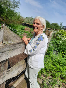 Längs floden IJssel i trakterna runt Zwolle ligger Herxen där du kan hitta både bildsköna cykelstråk och byggnader som bär på intressanta historier. Det är här som Gerd har sitt smultronställe , alldeles bredvid en stor äppelodling, där hon bor i sitt lilla trähus. Göken galer, kanadagässen simmar i den lilla sjön och svalorna flyger förbi oss där vi står och pratar. Det är verkligen vackert här. Gerd spenderar största delen av sin tid i trädgården. ”Jag tycker det är roligast att odla för att jag är med i hela processen och dessutom kan man använda det”, säger hon.